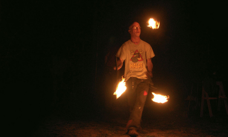 Gemeinsam mit meinem Partner präsentiere ich eine 30–40-minütige Lichtperformance mit einer Choreographie, die traditionelle Werkzeuge wie Fackeln und Poi mit moderner LED-Technik verbindet und so besondere Atmosphäre schafft.